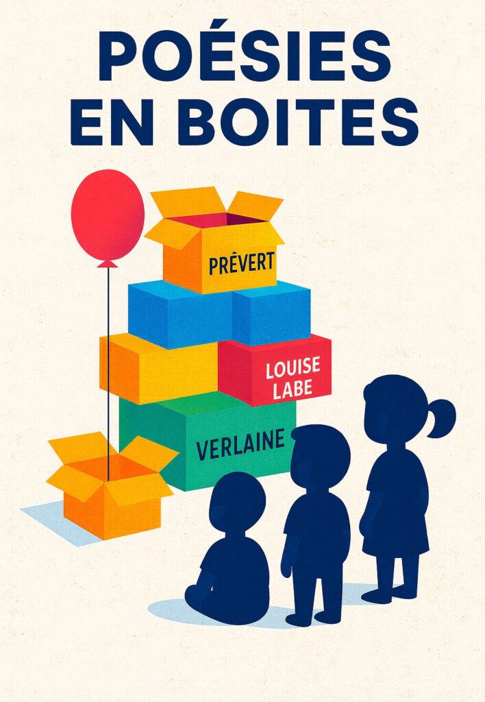 Poésies en boîtes est une invitation à entendre une langue et une écriture poétique inhabituelles aux oreilles des enfants.